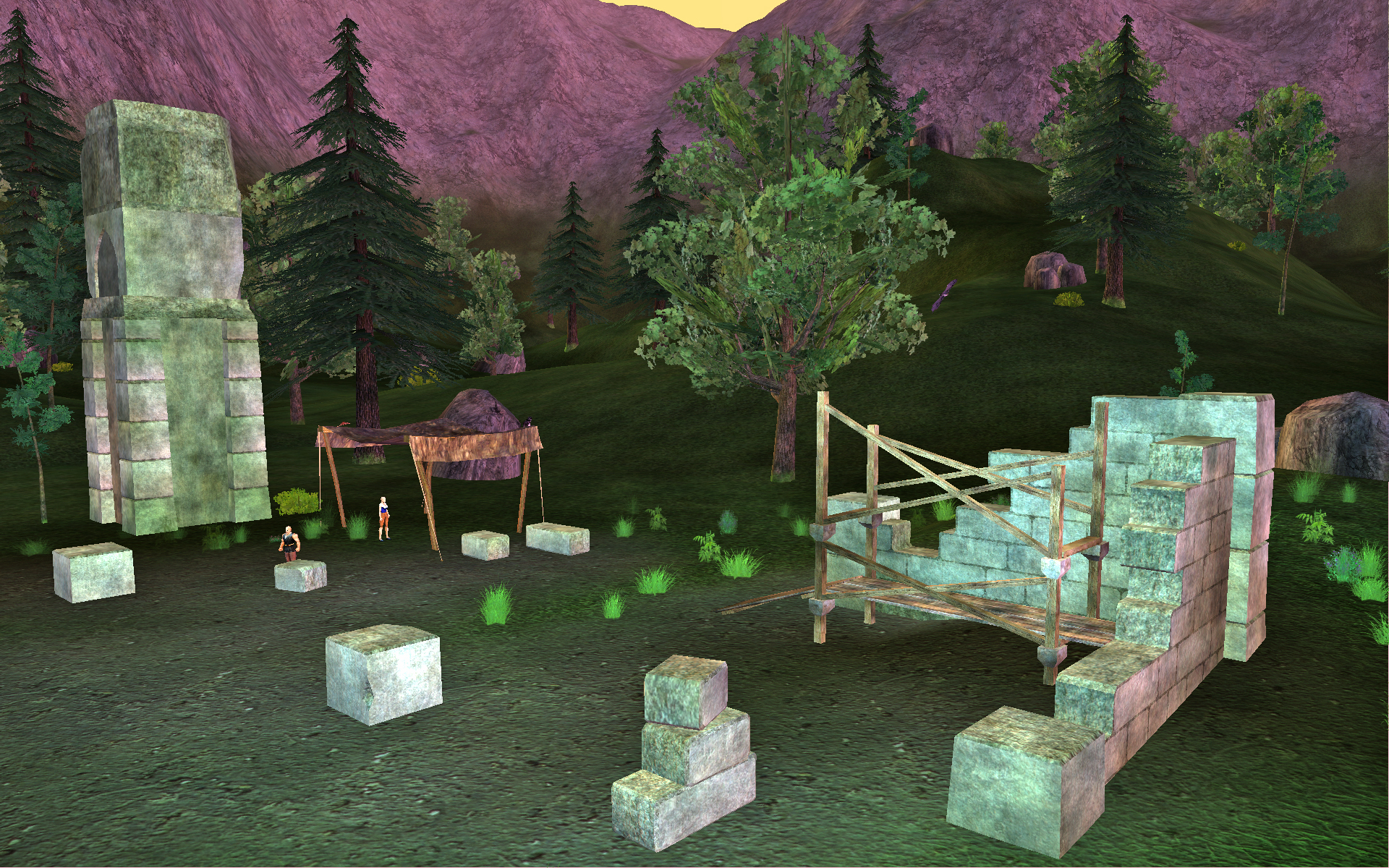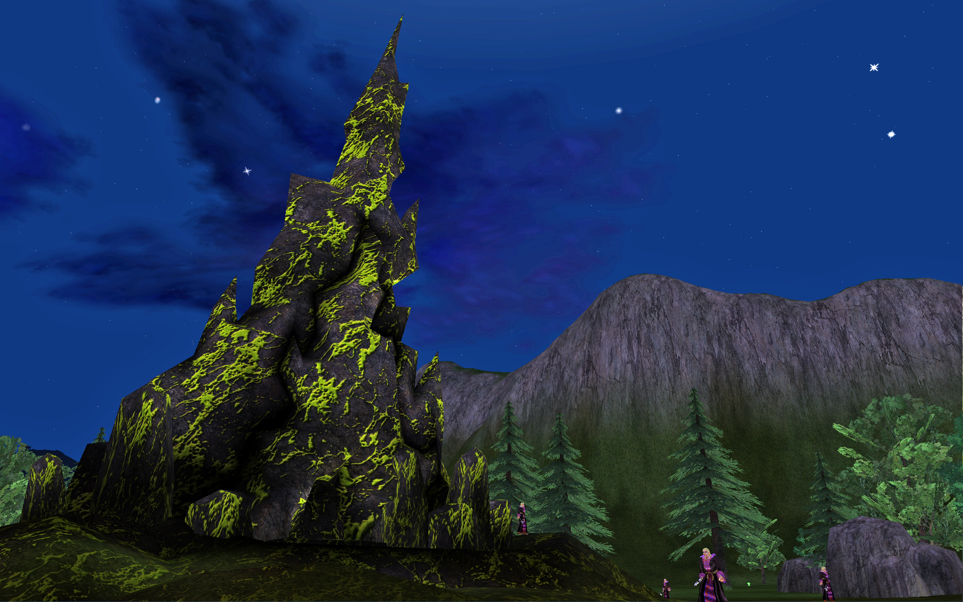 Oceangreen After the fall of the Combine Empire, the majority of humankind spread out and occupied the center of what was then called Tunaria. These humans lived in small villages upon the fertile plains of Karana and in an area along the western coast called the Oceangreen Hills. Over time, several villages prospered and grew into small towns. Two of these towns were so successful as to eventually grow into full-fledged cities. On the eastern coast, Freeport grew to be a bustling port frequented by those braving the journey across the Ocean of Tears. To the west, the city of Qeynos grew from the foundations of Oceangreen village, under the noble rule of Antonius Bayle, the Great Unifier. Oceangreen was made up primarily of lush green grassland and gently rolling hills. To the north, the Jaggedpine forest hampered travel towards the barbarian Northlands. To the east, a set of very high and steep hills cut off all access except for a tunnel that led to Blackburrow, home of the gnolls, and a narrow valley that led off to the great plains which are now known as the Plains of Karana. On the western borders of Oceangreen, several sets of steep hills existed in the northern region and an ocean bay in the southwest. The region was also the home to several different clans of Gnolls. However, only the largest of these clans, the Sabertooth clan, was violent towards human settlers. Despite the growth and prosperity in the area, a dark specter loomed on the horizon. A plague had slowly begun to take root in the Oceangreen region affecting not only humans but animals and plant life as well. Travelers brought horrifying tales of twisted, gruesome animals that have been disfigured by the blight. The source of the plague lay undiscovered for many years. Unbeknownst to the founders of Oceangreen village, a powerful temple to Bertoxxulous had been constructed along the outskirts of the city. As the village grew, so too did the power of the temple. Even the gnolls, once a real threat to hunters in the area, retreated into Blackburrow and barred the entrance. Then Antonius Bayle was born, and grew into a strong leader during the years that the plague from the hills began to infect the creatures and plant life of the Karanas. Bayle led a group of hunters and warriors into the hills and founded a stronghold on the edge of the forest and began a campaign against the followers of Bertoxxulous. Over time he overcame his enemies and the druids of Karana were able to wash away the taint of the disease. Slowly things began to return to normal and Antonius Bayle went on to found a city on the bay and called it Qeynos. But now the future of humankind is once again in jeopardy. The influence of the god of Discord has reached back through time to strengthen the plague and followers of Bertoxxulous. At such a critical moment in human history it will not take much to push them over the brink and forever change the history of Norrath. Without help the inhabitants of Oceangreen will surely be overcome by the power of this plague and usher in a new era of darkness for all humanity. Who will help to save them?