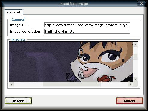- To use an external image, click on browse to or type in the URL in the bottom box. Note: Access to do either of these actions depends on the forum group's permissions.
