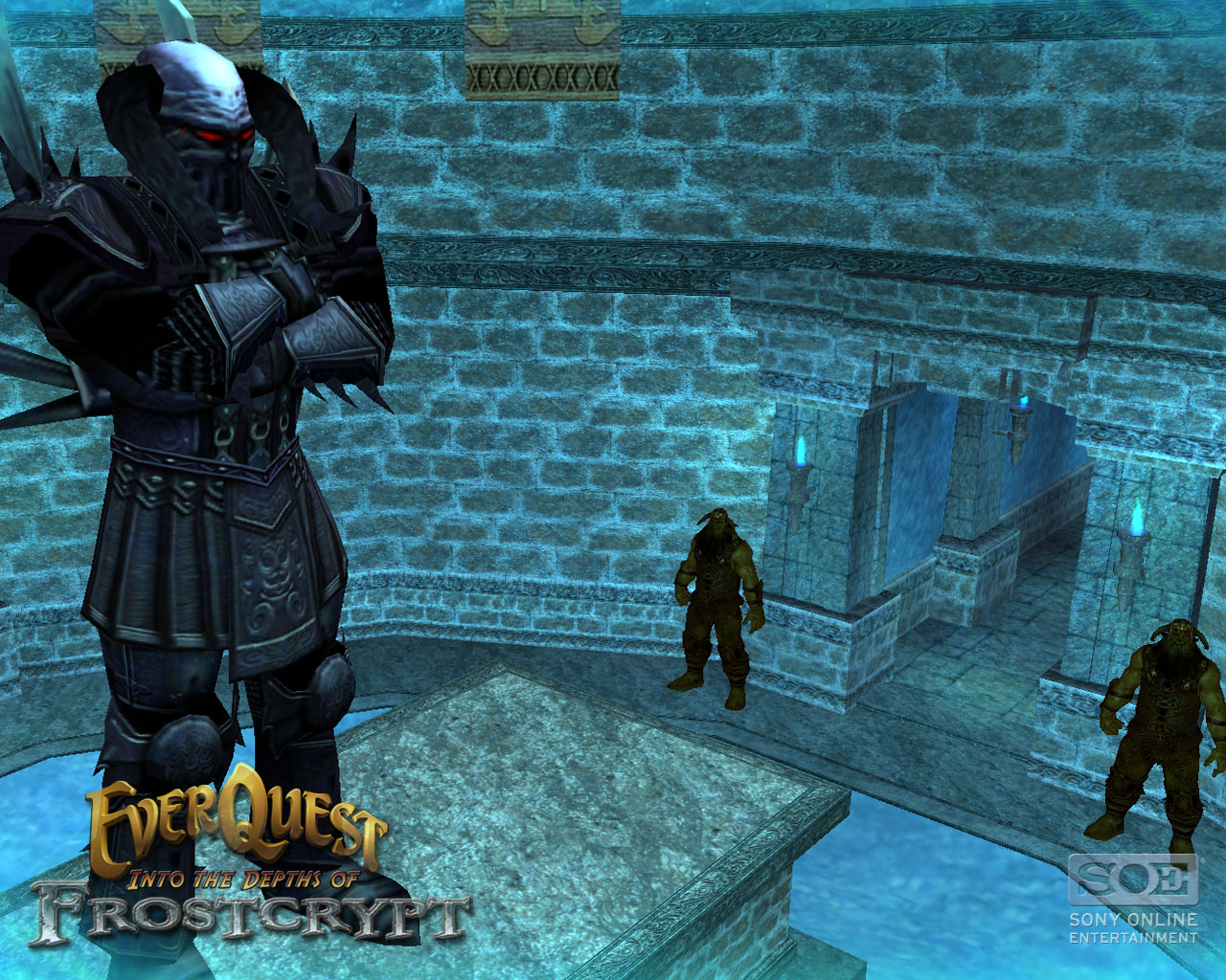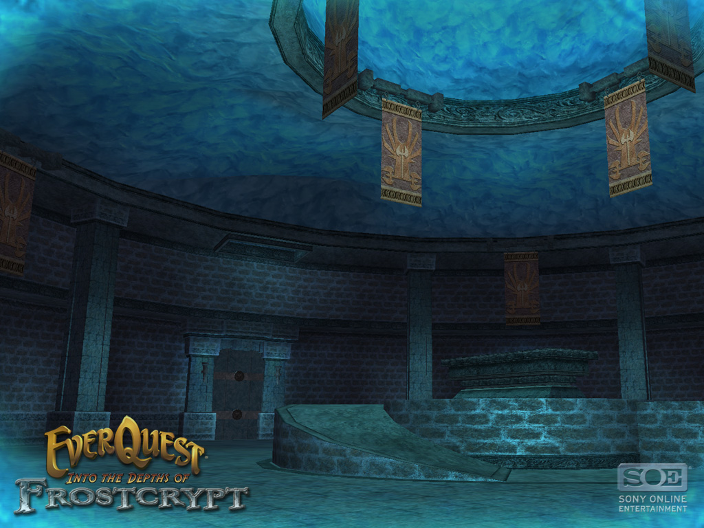 The front portion of Frostcrypt is hewn of ice and seems worn and basic. Deeper within Frostcrypt is the home of the Shades. The Shades are frustrated and tormented by the curse put upon them, built onto Frostcrypt, attempting to create a new city for themselves—to do what they can to feel normal. They feel their curse will end, once they kill the remaining traitors to Rallos Zek—all of their kin in Valdeholm.